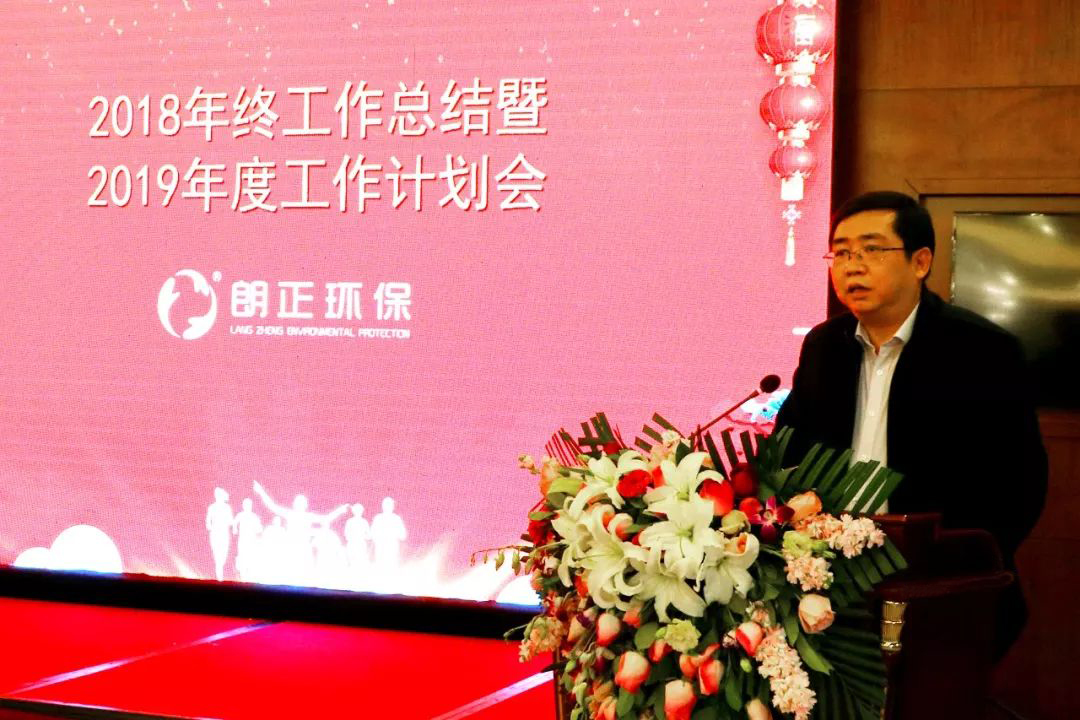 朱总在讲话中首先代表公司祝愿全体员工新年快乐、阖家幸福,指出2018年公司实现了销售合同近十倍级的增长,实现了企业的高速、跨越式发展,是公司发展令人鼓舞、令人振奋的一年,是全体朗正人值得自豪和铭记的一年!2019年挑战与机遇并存,要实现公司持续、健康、稳步的发展,朱总希望全体朗正人能够在新的一年振奋精神、一如既往、同心同德、全力以赴,立足本职岗位,不推诿、不懈怠,积极主动超预期的完成自己的工作,以百倍的信心和决心砥砺前行,功坚克难,百尺竿头更进一步,实现“朗正上市”的高远目标,书写崭新未来。 共同开创朗正环保更加辉煌、更加灿烂的2019年!