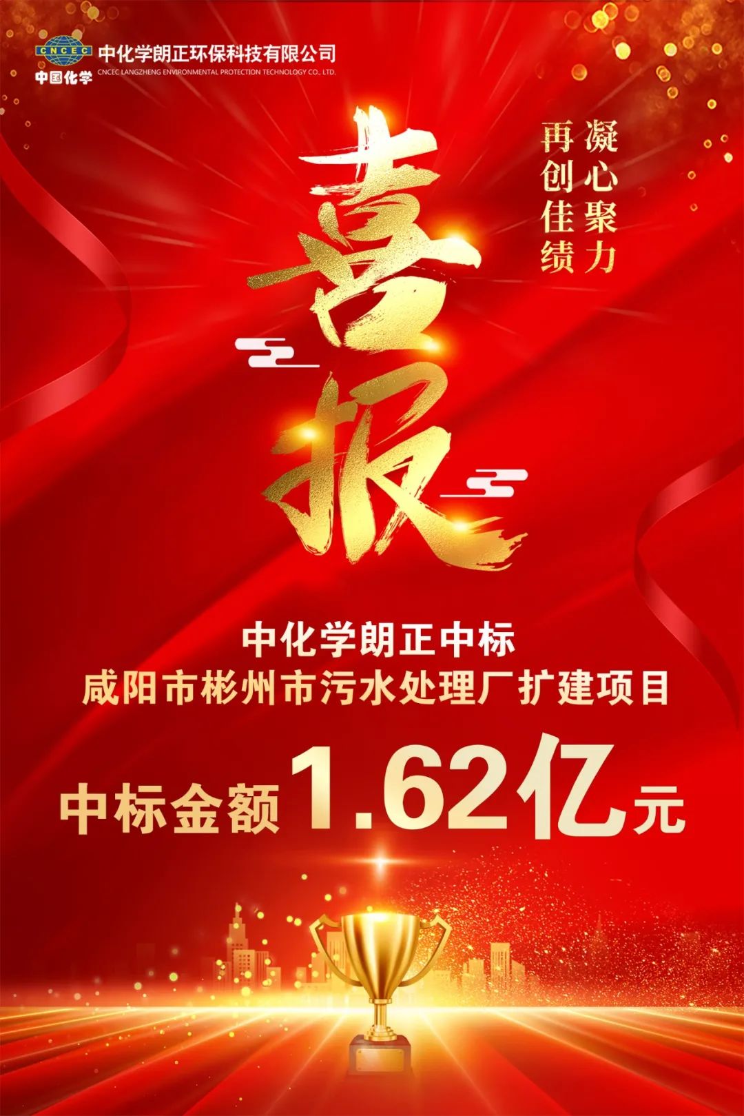 奋力拼搏创佳绩,捷报频传奏凯歌。近日,中化学朗正环保科技有限公司成功中标咸阳市彬州市污水处理厂扩建项目,该项目以EPC总承包模式运作,项目合同金额约1.62亿元,处理规模为1.0万㎥/d,出水标准达到《陕西省黄河流域污水综合排放标准》(GB61/224--2018)A标准。