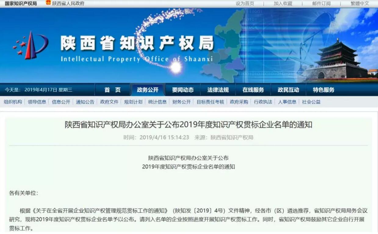 热烈庆祝朗正环保入围陕西省知识产权局知识产权贯标企业!