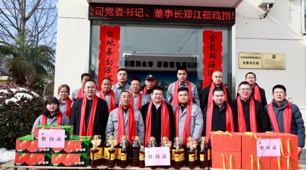 1月29日,农历大年初一,中国化学城投公司党委书记、董事长郑江一行到永寿污水处理厂调研,看望慰问春节期间依然坚守岗位的一线职工,组织召开座谈会,并向坚守岗位的一线职工送上新春的祝福和节日慰问。公司党总支书记、董事长王飞,总经理朱龙海参加慰问。