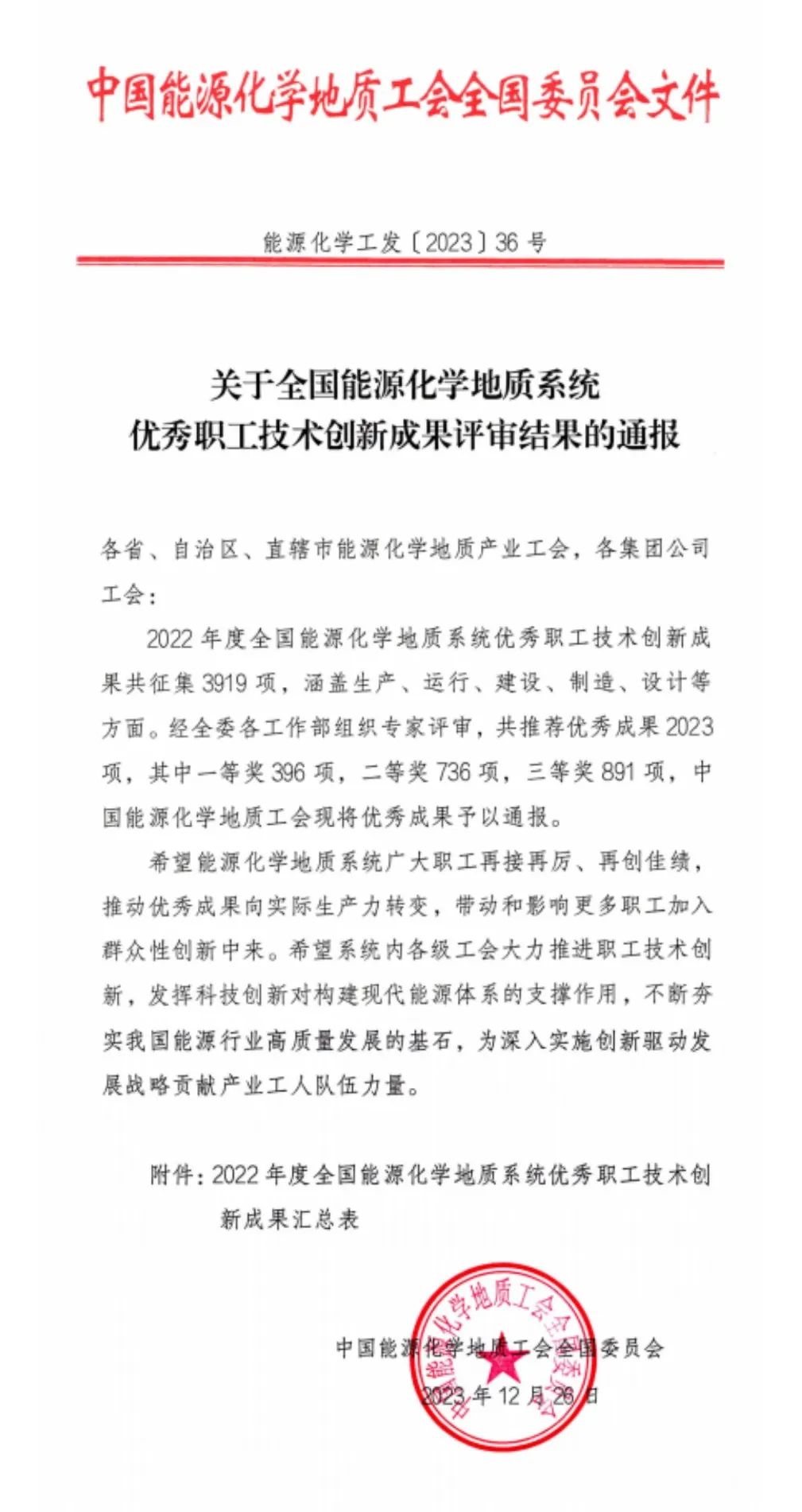 喜报│中化学朗正荣获全国能源化学地质系统优秀职工技术创新成果三等奖